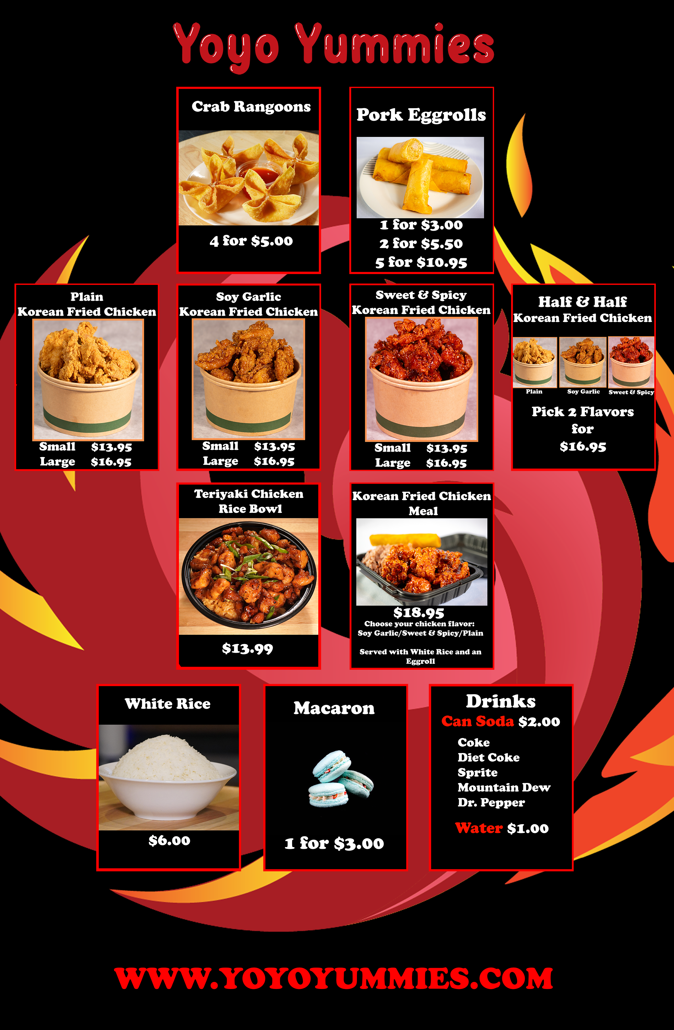 One bite of our Korean Fried Chicken, Eggrolls, Spring Rolls and Pad Thai, and we know that you will fall in love with Yoyo Yummies. Our mobile food trailer is catered and run with care and attention to detail, so you can be sure that you are always getting the best quality food. We believe that food should be an experience to savor and enjoy, and our food is designed to do just that. Come visit us today and experience the unique and delightful flavors of Asia!